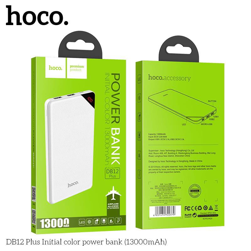 Pin sạc dự phòng Hoco DB12 Plus 13000mAh lõi Polymer, màn hình LCD, 2 cổng output max 2.1A